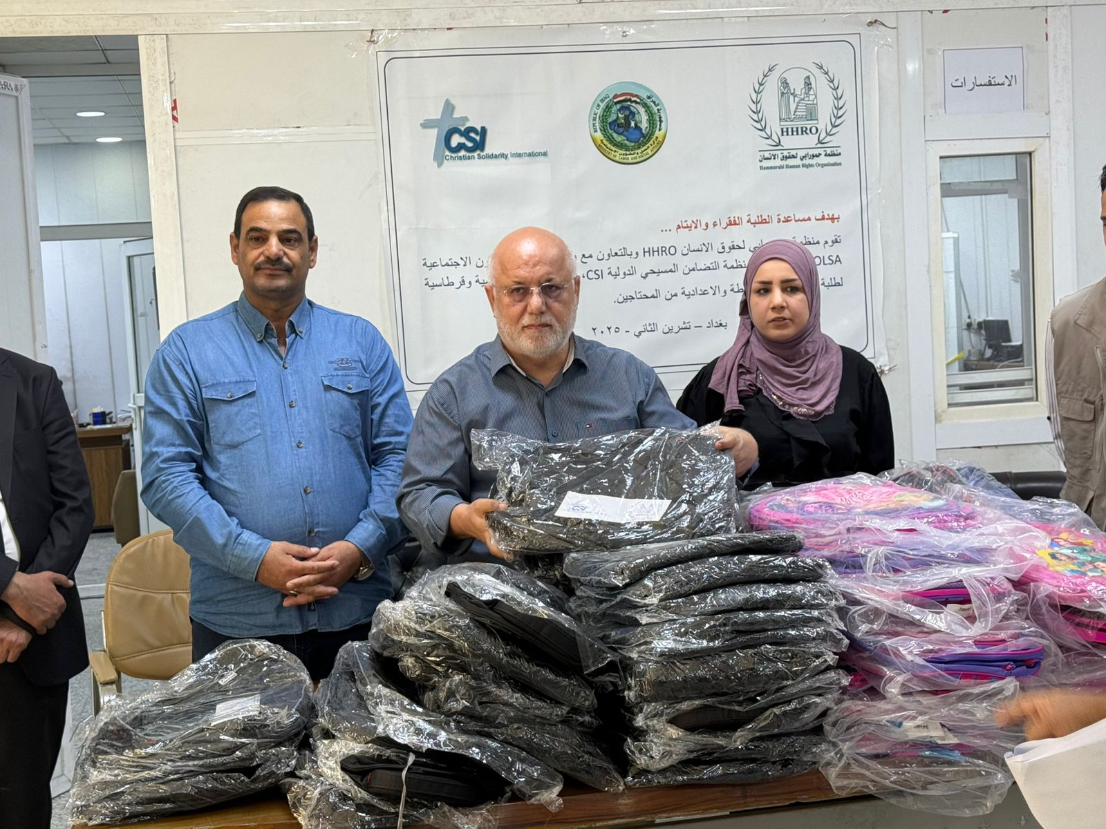 نفذت منظمة حمورابي لحقوق الإنسان، بدعم من منظمة التضامن المسيحي (CSI) وضمن برنامجها السنوي لدعم حقوق الإنسان والطلبة المحتاجين، حملة إنسانية لتوزيع الحقائب والقرطاسية المدرسية على مئة عائلة من ذوي طلبة المدارس والمشمولين بالرعاية الاجتماعية من الأسر التي تعيش تحت خط الفقر، وذلك بالتعاون والتنسيق مع وزارة العمل والشؤون الاجتماعية.