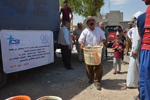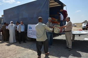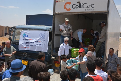 فريق مشترك من منظمة حمورابي ومنظمة التضامن المسيحي الدولية توزع 400 سلة صحية في قرية المجيدية وكزكان يوم 22-6-2017