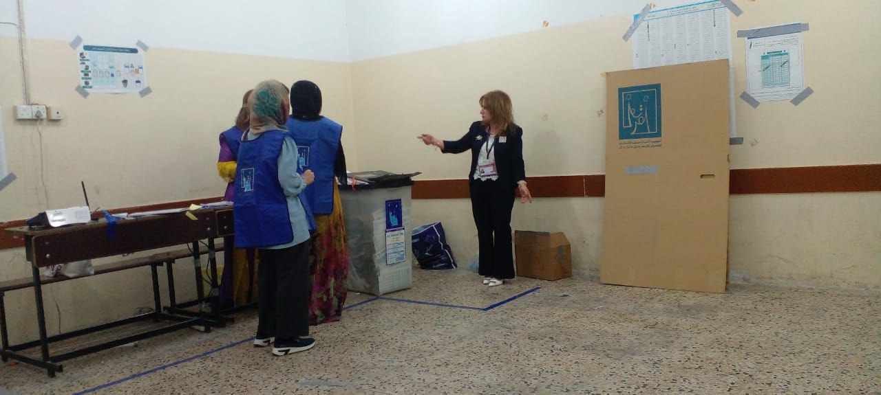 وذكرت لنا تفاصيل متابعتها لمركز الإقتراع، حيث رصدت ما رأته وعملته في صباح يوم الإنتخاب، حيث ذهبت إلى موقع مركز الإقتراع المختار لها من قبل الشبكة وهي (ثانوية عينكاوه للبنين) عند الساعة السادسة والنصف صباحاً حسب التعليمات الموجهة لها، قبل نصف ساعة من الوقت المحدد للإفتتاح وهو الساعة السابعة صباحاً، حيث بدأت عملية الإقتراع، وبدء الناخبين بالمجيئ الى المركز للإدلاء بصوتهم وتم تنظيم عملية دخولهم إلى محطات الإقتراع بإنسيابية عالية وبحسب التعليمات المقررة، وبعد ساعات من المباشرة بعملية التصويت إزداد حضور الناخبين للمركز، إذ كانت عملية الإقتراع تسير بشكل سلس وإنسيابي وبشكل جيد ومنظم دون حدوث أية خروقات أو مشاكل تقنية ولوجستية أو تعطيل في صندوق العد والفرز السريع، فقد حدثت بعض المشكلات الفنية البسيطة في بعض الأجهزة مما أدى إلى عدم التعرف على بصمة بعض الناخبين، حيث لم تظهر بصماتهم ولم يتم قراءتها مما تسبب بامتعاضهم وإنزعاجهم من هذه المشكلة والتي تمت معالجتها بالفور.