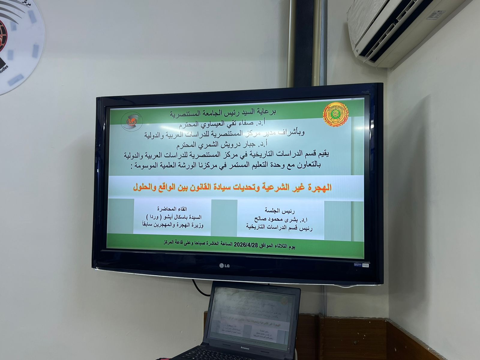 في إطار جهودها المتواصلة لتعزيز الوعي المجتمعي بقضايا حقوق الإنسان، شاركت منظمة حمورابي لحقوق الإنسان في ورشة علمية نظّمها قسم الدراسات التاريخية في مركز المستنصرية للدراسات العربية والدولية، بالتعاون مع وحدة التعليم المستمر، في الجامعة المستنصرية، وذلك يوم الثلاثاء الموافق 28 نيسان 2026.