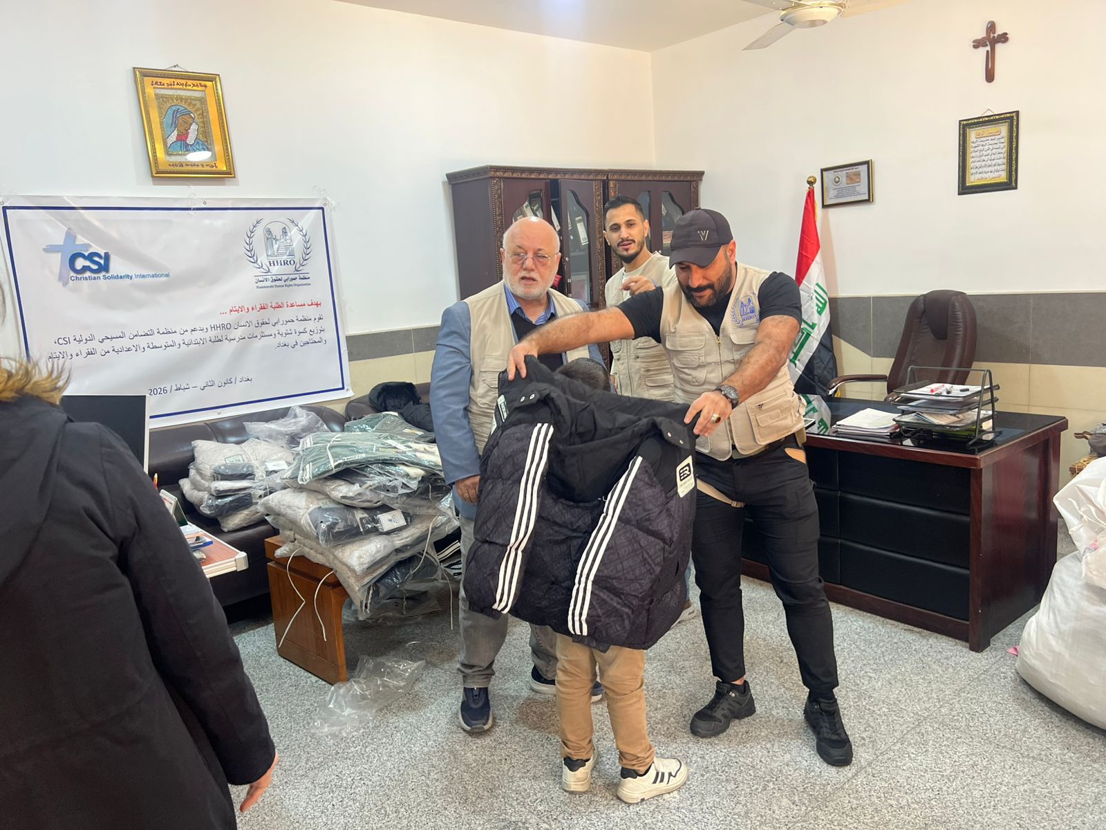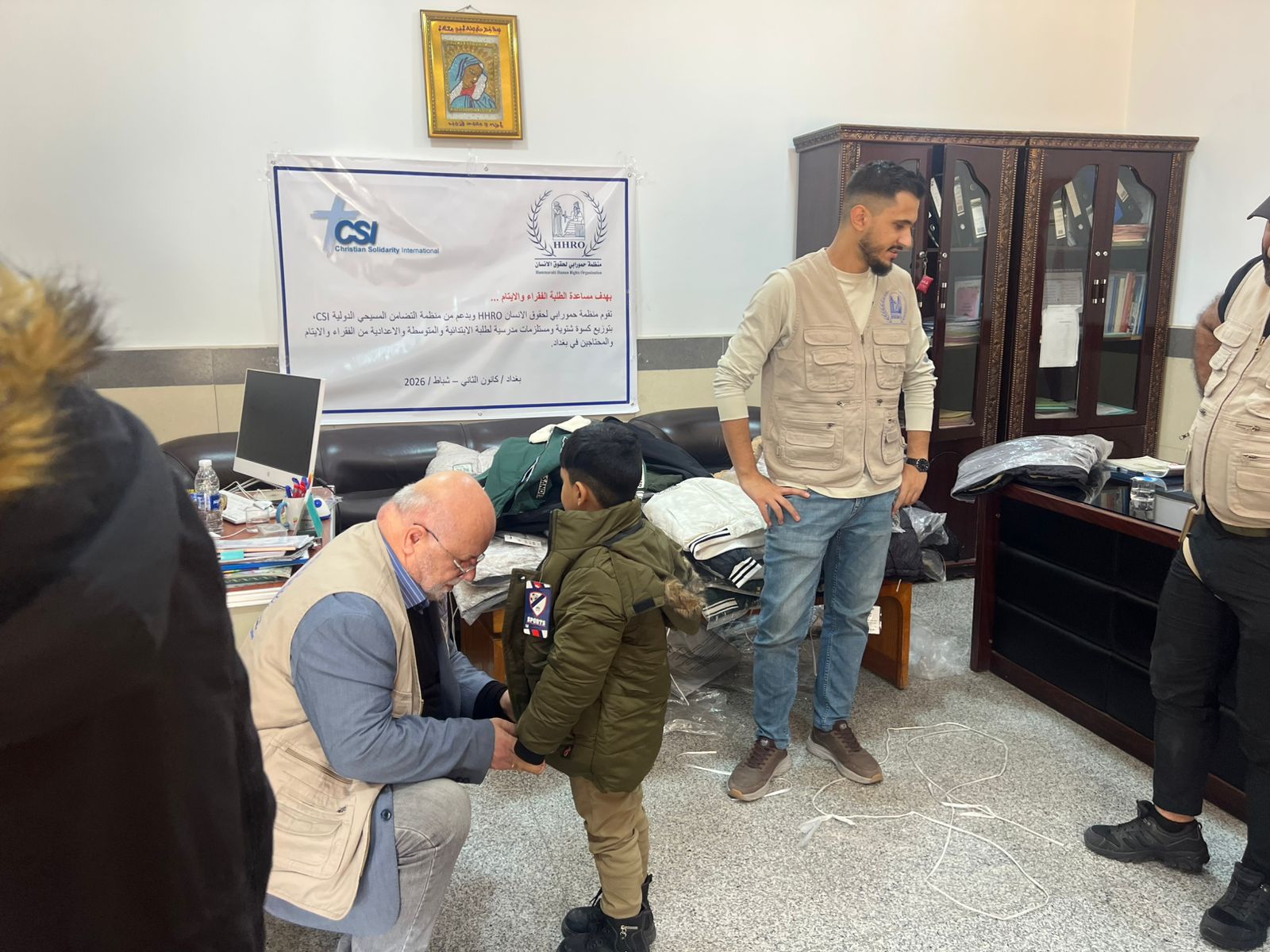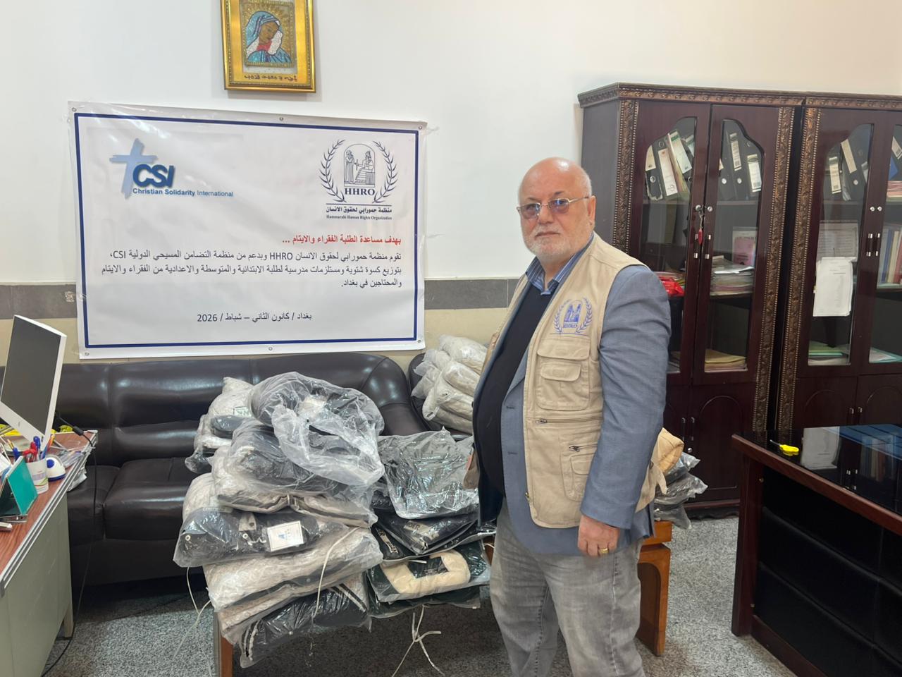 في إطار مشروعها الإنساني لتوزيع الكسوة الشتوية على الأطفال المحتاجين في العراق تزامناً مع موسم أعياد الميلاد المجيدة، نفذت منظمة حمورابي لحقوق الإنسان، وبدعم من منظمة التضامن المسيحي الدولية، حملة توزيع جديدة شملت مجموعة من طلبة مدرسة الرها في منطقة بغداد الجديدة / النعيرية، يوم السبت الموافق 10 كانون الثاني 2026.