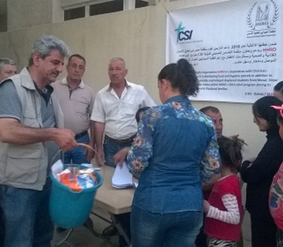 شملت منظمة حمورابي لحقوق الإنسان ( 220 ) عائلة نازحة من سهل نينوى والموصل والتي يأويها الآن حي دروازة في اربيل بـ (220) سلة صحية مساء يوم الخميس 21 نيسان 2016 ، وتأتي هذه الخطوة الاغاثية ضمن البرنامج الذي اعتمدته حمورابي خلال عام 2016 لدعم العوائل النازحة والمهجرة قسرا حماية لها من الإمراض والأوبئة خاصة وان جميع مخيمات النازحين والإحياء التي سكنوا فيه تفتقر للخدمات الأساسية ، وجاءت هذه الخطوة بعد خطوة اغاثية حققتها المنظمة في نهار اليوم نفسه، حيث شملت بالاغاثة ( 256 ) عائلة وتم التوزيع في كنيسة أم النور في عنكاوة ، وبذلك تكون منظمة حمورابي لحقوق الإنسان قد شملت بهذه السلال الصحية ( 476 ) عائلة خلال يوم واحد .
